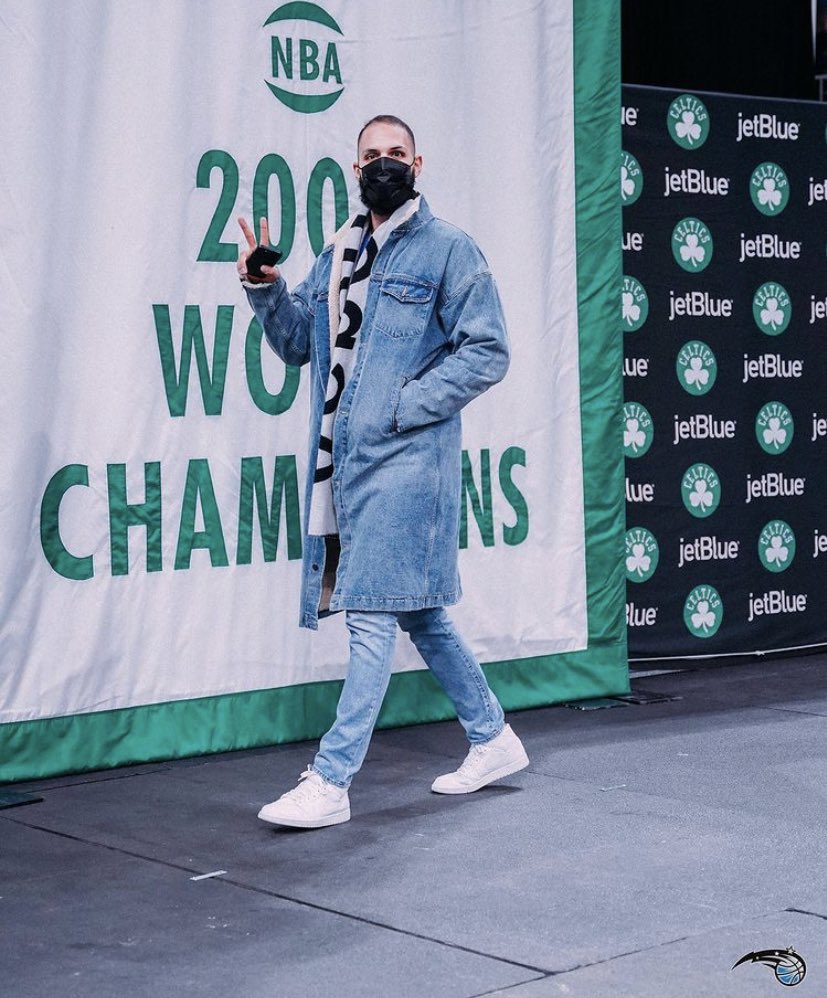 Evan Fournier – Denim trench coat part deux! The French shooting guard had me reminiscing on that notoriously awful (amazing) JT and Britney red carpet look.