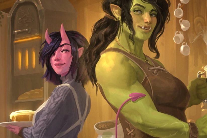 At the beginning of Legends and Lattes, Viv, an orc and former bounty hunter, finishes her last job with her party and arrives in the sleepy town of Thune with the goal of opening a successful coffee shop. I loved reading about how Viv’s coffee shop (a novelty in her world) comes together with the help of new friends and about her desire to be more than she seems, all while making a new home in Thune.